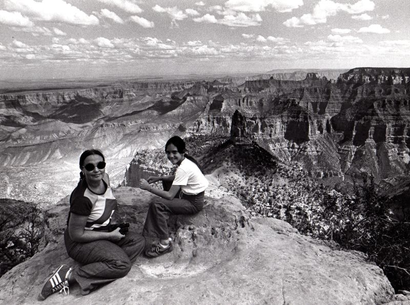Our family vacations were always interesting because my parents liked to go places we could drive to (there were a few trips – England, Scotland, and Wales, Jamaica, Hawaii – which needed a plane ride) from our Southern California home. My parents were interested in the Southwest primarily for the history, Native American culture and art, and the scenery (my dad was a very gifted amateur photographer — see the glamorous family vacation shot below. We look like Ansel Adams went on the trip with us!). We went to investigate the most obvious of the Southwest – the Grand Canyon – but also explored sites like First, Second, and Third Mesa among many other places.